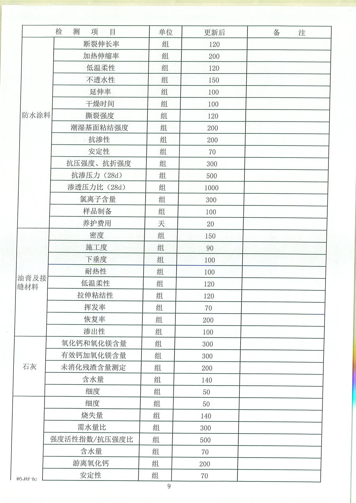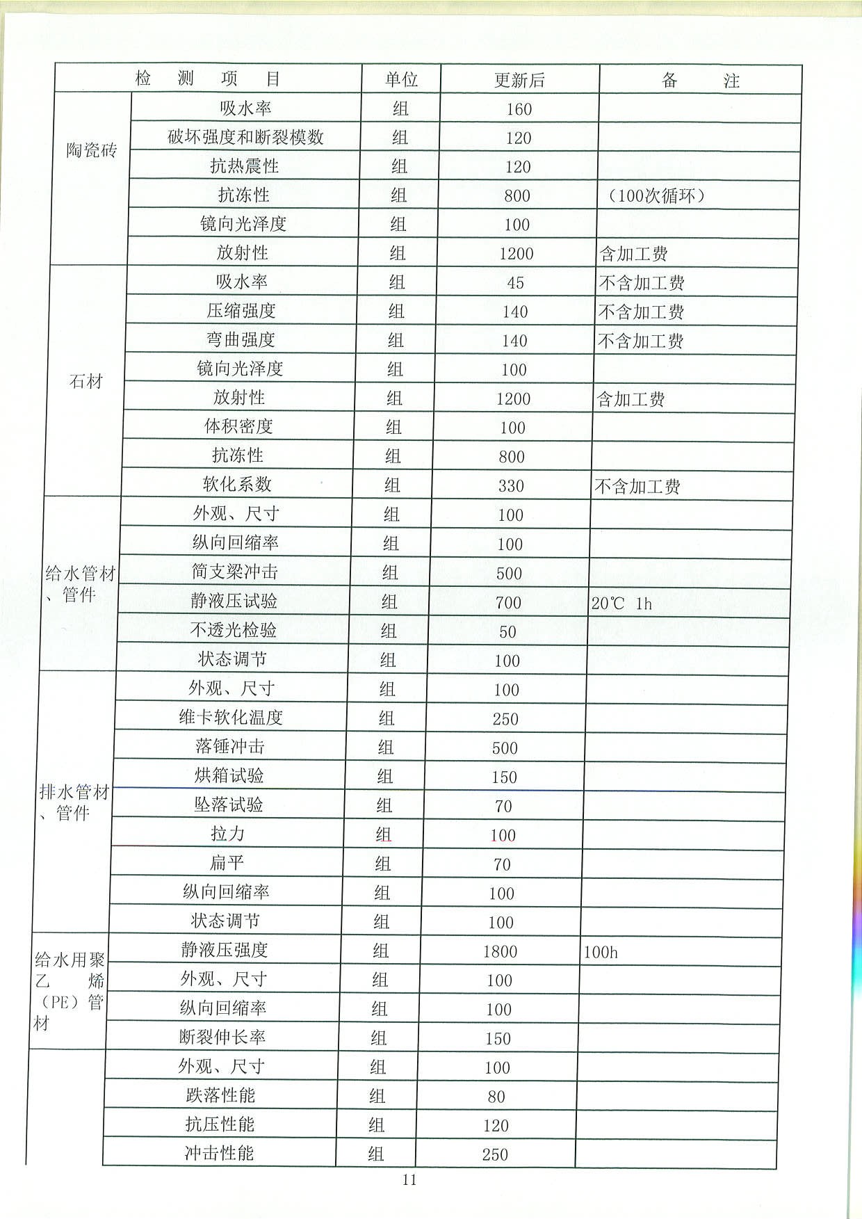 收费标准